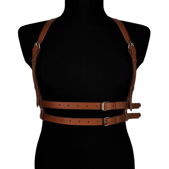 Brązowa skórzana uprząż na ciało Karess Nastia
