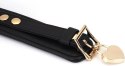 Złota smycz dołączona do obroży to nie tylko praktyczny dodatek, ale także element, który dodaje całemu zestawowi niepowtarzalnego charakteru. Smycz o długości 106 cm wyposażona jest w solidną skórzaną rączkę oraz klips do szybkiego odpinania, co umożliwia łatwe manipulowanie i kontrolowanie sytuacji. Dzięki pełnej odpinaności, smycz oferuje różnorodne możliwości wykorzystania w zabawach bondage.