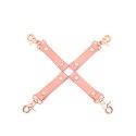 Liebe Seele Pink Dream Hogtie jest częścią cudownie kobiecej kolekcji Pink Dream, która została stworzona z myślą o osobach pragnących odkrywać swoją wewnętrzną femme. Kolekcja ta na nowo odkrywa klasyczny wygląd BDSM, wprowadzając do niego elementy pasteli i delikatności. Każdy produkt z tej serii, wykonany z wspaniałej skóry w kolorze baby pink z przepięknymi wykończeniami w kolorze różowego złota, jest hołdem dla subtelnej elegancji i zmysłowości.