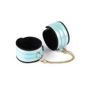 Każdy element zestawu został wykonany z najwyższej jakości materiałów, które zapewniają trwałość i komfort użytkowania. Sztuczna skóra i aksamitna podszewka gwarantują, że każdy kontakt z ciałem jest przyjemny i bezpieczny.