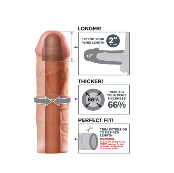 Pipedream Fantasy X-tensions Mega 2" Extension Light to innowacyjna nakładka na penisa, stworzona z myślą o tych, którzy pragną eksplorować nowe horyzonty w sferze intymności. Zaprojektowana z dbałością o najdrobniejsze detale zapewnia przedłużenie o długości 2 cale, a za sprawą wyjątkowo grubych ścianek, które zwiększą średnicę Twojego członka o około 66%.