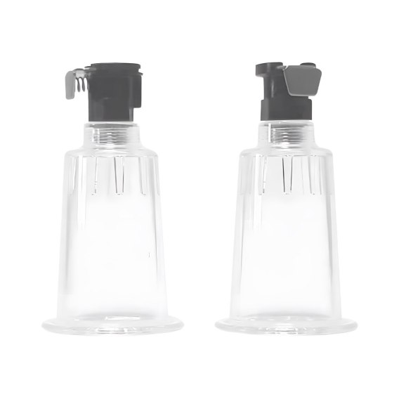 Każdy cylinder ma wymiary 5 cm długości i 2,5 cm średnicy wewnętrznej — idealne do precyzyjnego objęcia sutka i stworzenia wokół niego komory ciśnieniowej. Taka skala pozwala na maksymalną koncentrację podciśnienia, które wciąga brodawkę w głąb przezroczystej tuby, umożliwiając jej wydłużenie nawet o kilka milimetrów. To nie symbolika, to dosłowny efekt — zmiana formy i funkcji.