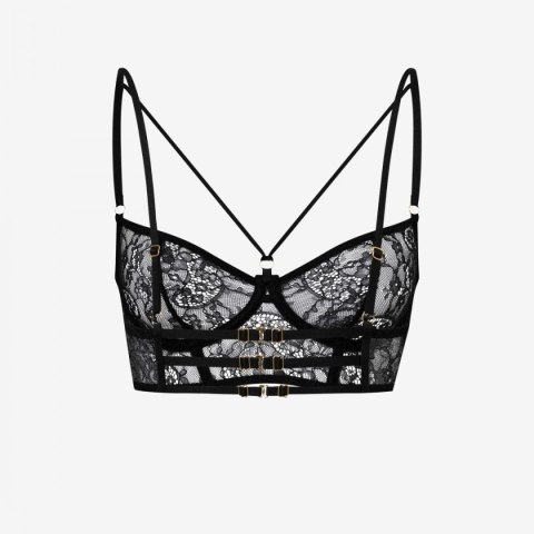 Niewielka część bielizny damskiej może poszczycić się takim seksapilem, co koronkowy biustonosz, zwłaszcza w czarnym kolorze. Model Abigail ma wszystko, czego potrzebujesz, aby czuć się wyjątkowo, zmysłowo oraz wygodnie. Przepiękna koronka gustownie ozdobi Twój biust i dekolt, natomiast usztywniane miseczki zapewnią doskonałą stabilność Twoim piersiom. Zobacz sama!Biustonosz koronkowy Abigail - co powinnaś o nim wiedzieć?Bielizna nie powinna być wyłącznie ubraniem o walorach pragmatycznych, ale również estetycznych. Dzięki niej możesz bowiem wyrażać siebie i poczuć się lepiej we własnej skórze. Nawet jeśli nikt nie widzi Twojego pięknego kompletu albo uroczych podwiązek na nogach, nie oznacza to, że nie powinnaś ich nosić. Najważniejszy jest bowiem efekt, który bielizna wywołuje na Tobie, a dobrze dopasowany stanik, majtki i pozostałe akcesoria mogą zdziałać cuda, poprawiając Twoje samopoczucie i zwiększając pewność siebie.Bez wątpienia tak działa koronkowy biustonosz Abigail, uszyty z delikatnego i lekkiego, ale wytrzymałego i wysokiej jakości materiału. Zakładając go na swoje ciało, poczujesz ogromną przyjemność, wywołaną dotykiem miękkiej i zwiewnej tkaniny. Bielizna wyróżnia się koronkowym wzorem o dużych walorach artystycznych i estetycznych. Kwiatowy motyw pasuje do każdego rodzaju kobiecej urody i skutecznie eksponuje jej piękno oraz wdzięk. Miseczki stanika są subtelnie prześwitujące, co powoduje, że czarny stanik nabiera seksownego i uwodzicielskiego charakteru, które z powodzeniem wykorzystasz podczas intymnych chwil. Prześwitujące miseczki sprawiają ponadto, że kwiatowy wzór jest bardzo widoczny na skórze, dając fantastyczny efekt ozdobny. Rezultat jest tym bardziej imponujący, że pod piersiami zaprojektowaliśmy nieco szerszy obwód, który dodatkowo akcentuje bieliznę na sylwetce. Razem z eleganckimi paskami, przechodzącymi przez dekolt, całość prezentuje się niezwykle gustownie z nutką erotycznego stylu. Ekskluzywnym elementem, który nadaje koronkowemu biustonoszowi ogromnej gracji, są z kolei złote akcenty w postaci zapięć i regulatorów. Sama przyznasz, że rewelacyjnie wyglądają one w zestawieniu z czarnym materiałem, prawda?Poznaj czarny stanik z koronki i dopasuj do swoich potrzebW Promees projektujemy i szyjemy bieliznę damską, która odpowiada kobiecym potrzebom oraz pragnieniom. Z pomocą naszych produktów i akcesoriów, zyskujesz niepowtarzalną szansę na zaprezentowanie swojego prawdziwego „ja" i zrealizowanie najskrytszych fantazji. Aby jednak bielizna spełnia swoje zadanie, musi być idealnie dopasowana do Twoich oczekiwań. Tym samym biustonosz koronkowy Abigail jest dostępny w rozmiarach: XS, S, M oraz L. Różnorodność wyboru to jednak nie wszystko, ponieważ możesz dopasować obwód stanika do swoich preferencji, wykorzystując do tego łatwe w obsłudze regulatory oraz haftki. W rezultacie spersonalizujesz tę seksowną bieliznę i uczynisz z niej ubranie, które będzie wprost stworzone dla Ciebie.Zadbaliśmy także o Twój komfort. Nie tylko miękka i wygodna koronka powoduje, że zakładając ten biustonosz, poczujesz się bosko i swobodnie. Miseczki są bowiem usztywniane za pomocą fiszbiny, która ma za zadanie podtrzymywać i modelować biust. Budowa miseczek i konstrukcja biustonosza jest zaprojektowana w taki sposób, aby eksponować i akcentować wdzięki. Dzięki temu koronkowy stanik jest rewelacyjnym wyborem zarówno dla kobiet z mniejszymi piersiami, jak i większymi.Moda powinna być wyrazem kreatywności i wolności. Dlatego w naszej kolekcji znajdziesz wiele produktów, które możesz swobodnie ze sobą łączyć, tworząc niepowtarzalne i zmysłowe komplety damskiej bielizny. Prezentowany biustonosz świetnie pasuje do majtek oraz pasa do pończoch Abigail. Całość tworzy spójny zestaw koronkowej bielizny, ale to nie jest jedyna opcja, jaką masz, ponieważ w Promees możesz tworzyć seksowne stroje z dowolnej bielizny, akcesoriów i ubrań.Zacznij od koronkowego biustonosza Abigail!