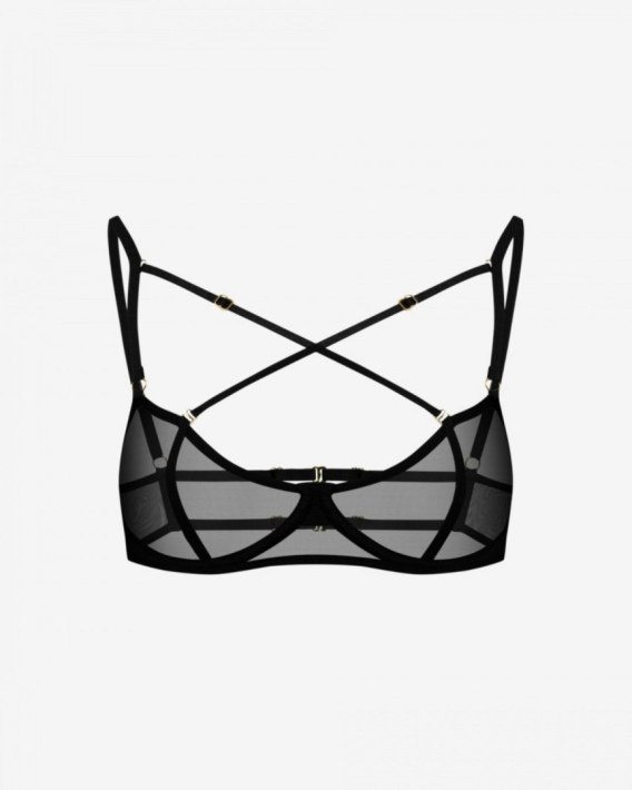 Prześwitująca bielizna z siatki - biustonosz erotyczny z paskami