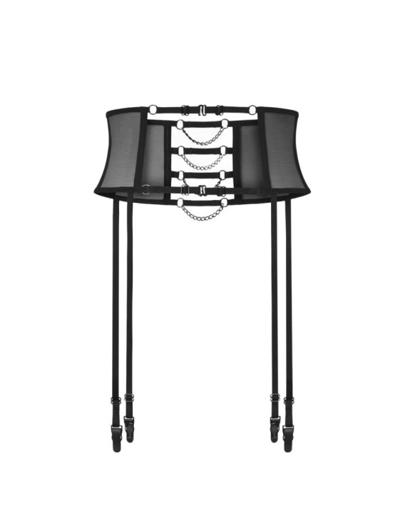 Regulowany obwód pozwala na perfekcyjne dopasowanie, podkreślając talię i nadając sylwetce harmonijnych proporcji. Metalowe detale w głębokiej czerni oraz subtelne łańcuszki dodają całości drapieżnego charakteru, przyciągając spojrzenia i podsycając pożądanie. Każdy element został zaprojektowany tak, aby pas nie tylko zdobił ciało, ale również stał się nieodłącznym elementem intymnej gry, podsycając napięcie i uwodząc w każdym detalu.