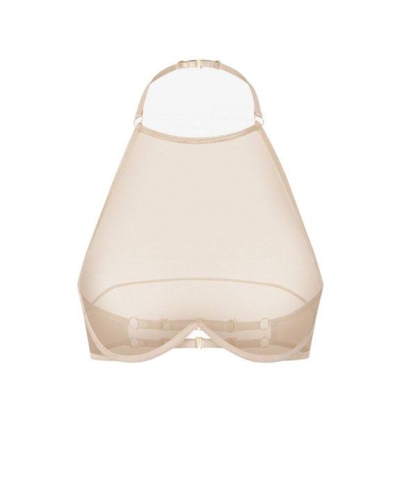 Biustonosz Reina Nude to połączenie subtelnej elegancji i magnetyzującej zmysłowości. Wykonany z delikatnego, prześwitującego tiulu w cielistym odcieniu, otula skórę niczym druga skóra, subtelnie eksponując biust i podkreślając jego naturalny kształt. Zabudowany przód dodaje całości intrygującego charakteru, czyniąc ten model nie tylko bielizną, ale także elementem stylizacji, który z powodzeniem może zastąpić top.