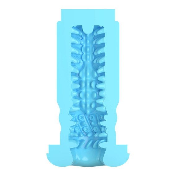 After Kiss to wymienny rękaw do masturbatora z serii Super Series, zaprojektowany z myślą o zapewnieniu dynamicznej, zmiennej stymulacji. Wnętrze rękawa dzieli się na trzy odrębne strefy, z których każda oferuje inną strukturę - od łagodnych żeberek po wyraźne, spiralne wypustki i gęsto ułożone guzki.