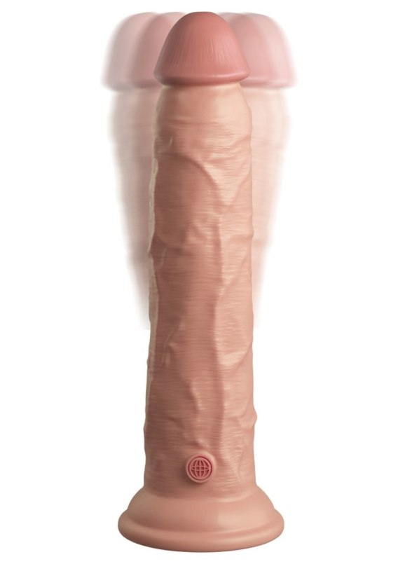 Silikonowe dilda i wibratory King Cock Elite® są wykonane z wysokiej jakości Elite Silicone™ o podwójnej gęstości. Realistyczna silikonowa warstwa zewnętrzna jest gładka w dotyku, a twardy silikonowy wewnętrzny trzon jest sztywny i wyprostowany świetnie imitując prawdziwego penisa, dzięki temu ma się wrażenie, że uprawia się seks z prawdziwym facetem! Ponadto ten wibrator oferuje również 10 trybów (3 prędkości + 7 funkcji) silnych stymulujących wibracji za pomocą prostej obsługi jednym przyciskiem. Każdy King Cock® jest wytwarzany z specjalistycznych i bezpiecznych materiałów i dokładnie sprawdzany, aby spełniał wytyczne dotyczące najwyższej jakości jaką oferuje producent. Używaj tylko z wodnymi lubrykantami.